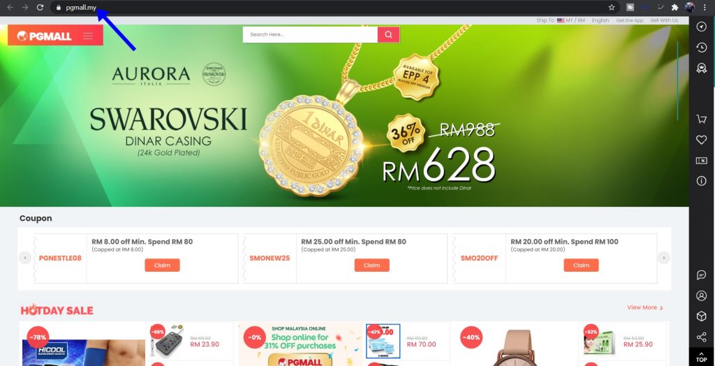 Selepas 24 jam, taip “www.pgmall.my” di browser anda