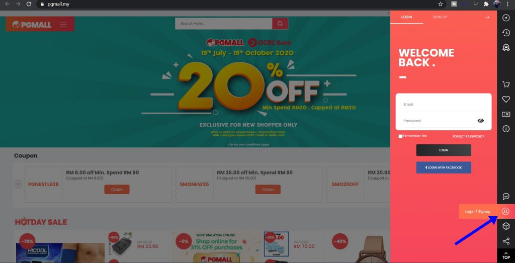 Klik pada Login/Sign-up. Gunakan PG Code anda dan password sama di website Public Gold.