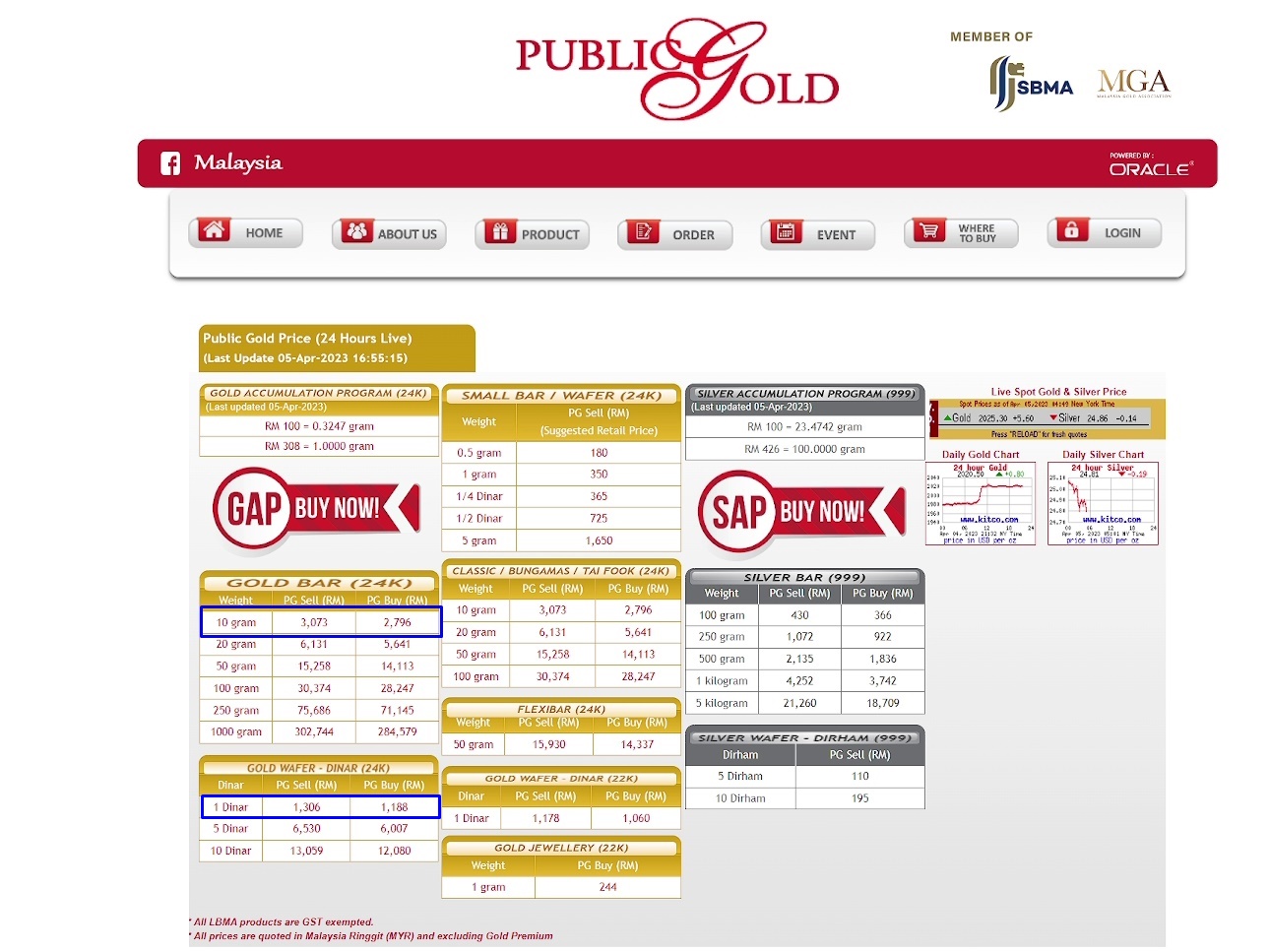 Harga Public Gold pula untuk hari saya jual kesemua emas;