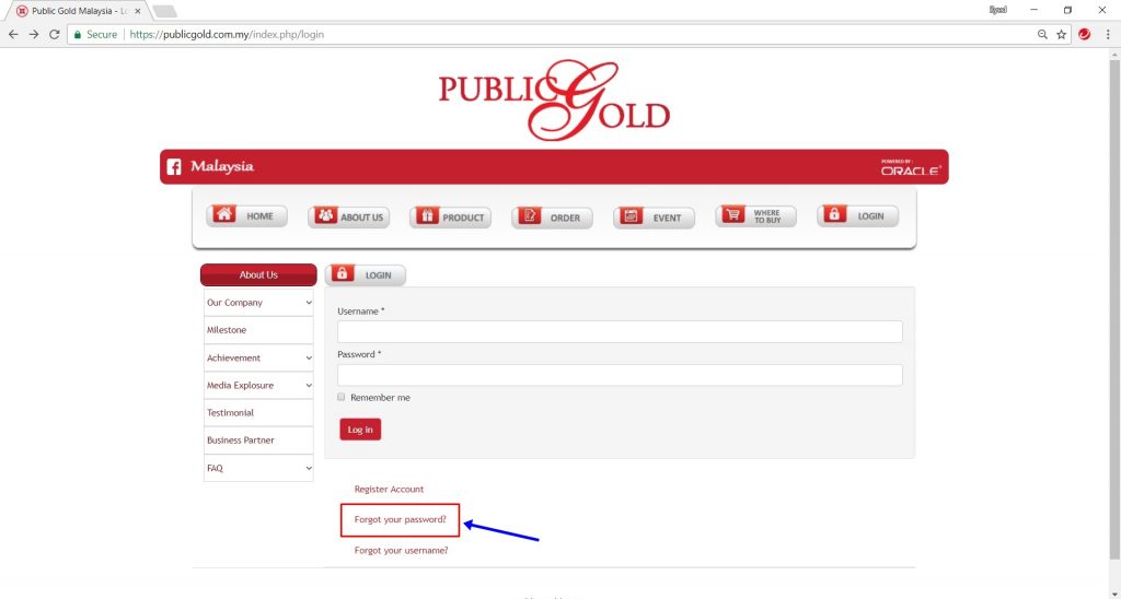 1. Taip “www.publicgold.com.my” di browser anda dan klik butang “login