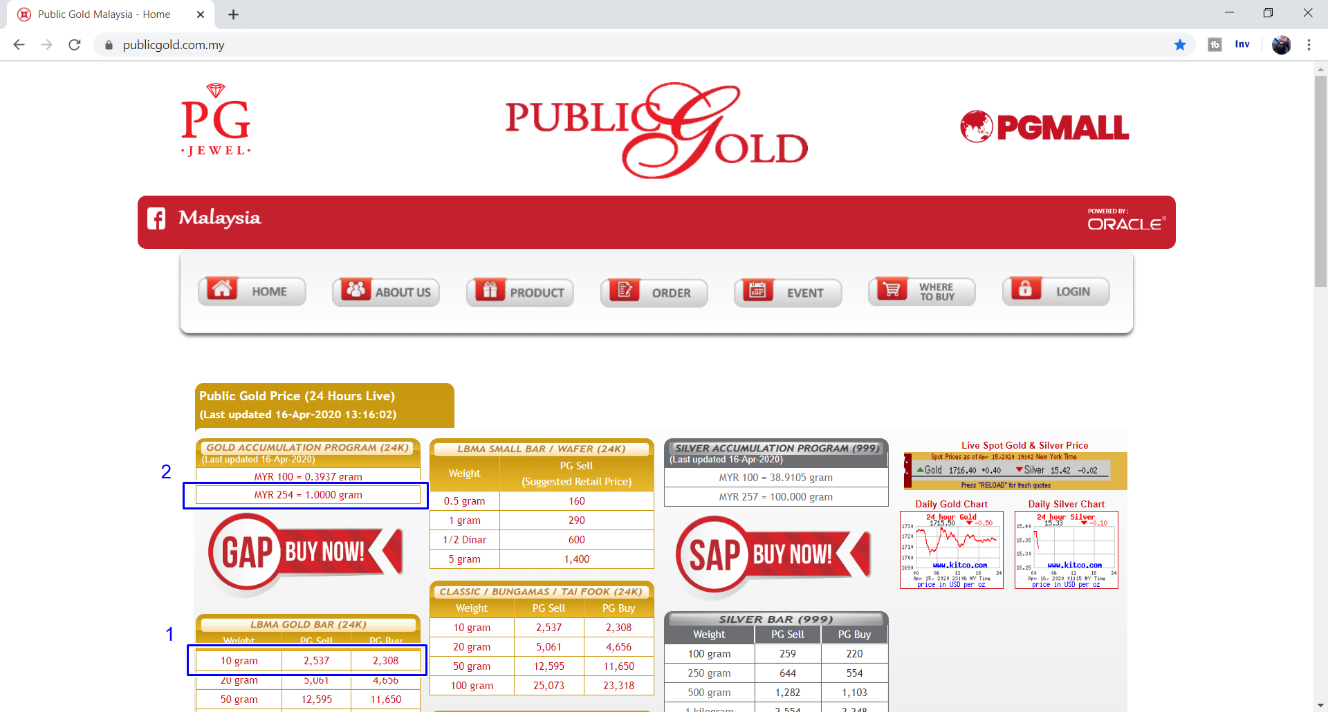 Kita semak harga emas 24k di (1). Data ini akan dikemaskini setiap 20 min mengikut pasaran spot + premium over spot syarikat. Untuk membeli emas esok hari, terbaiknya beli emas melalui akaun GAP (2) dan tunggu sekitar jam 10 malam Malaysia.