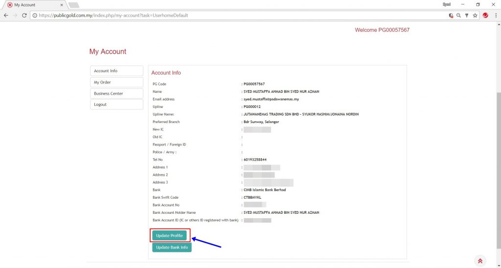Anda baru dapat PG Code (PGXXXXXXXX) dan blur tidak tahu bagaimana nak mula? Di sini saya kongsikan sedikit sebanyak navigasi penting di website Public Gold – Update Profile